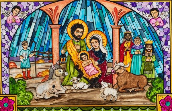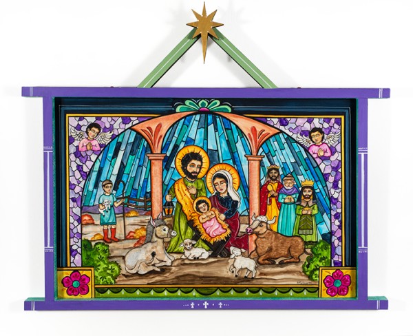 Retablo; carved wood with pigments, 24"h x 29"w x 1.5"d, Item No. 23443,