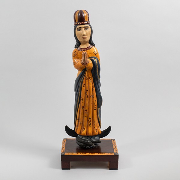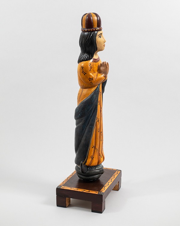 Bulto; carved wood with pigments, 18"h x 6.5"w x 4.5"d, Item No. 23453,