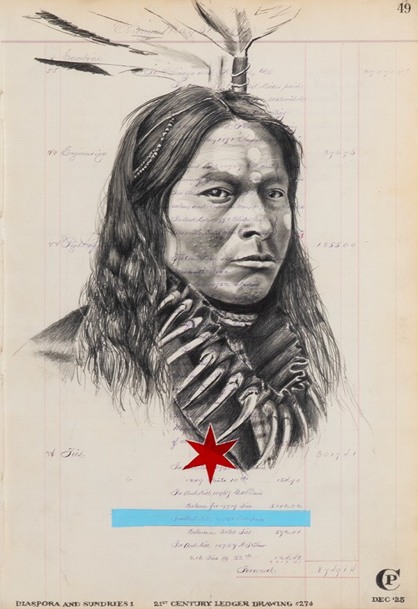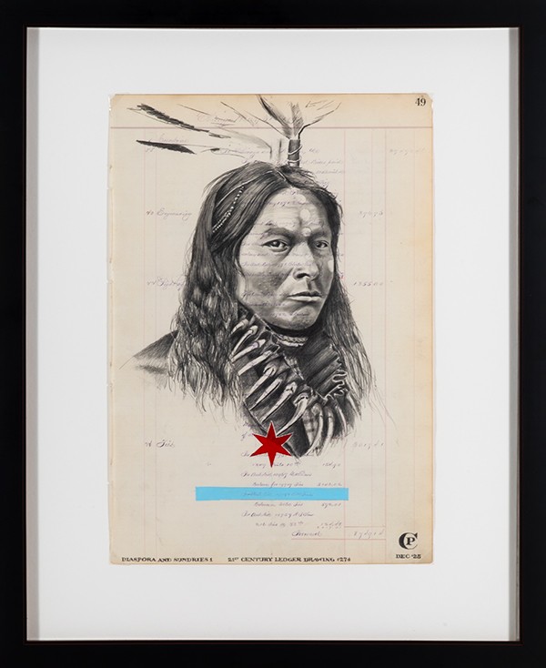 Pencil and acrylic on Railroad Co. ledger dated 1871, Image: 15"h x 10"w, Frame: 21.25"h x 17.25"w, Item No. 23551,