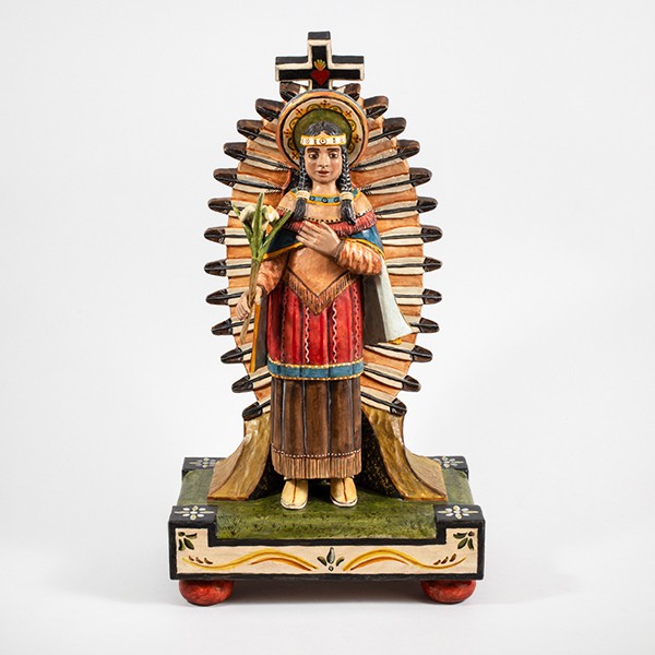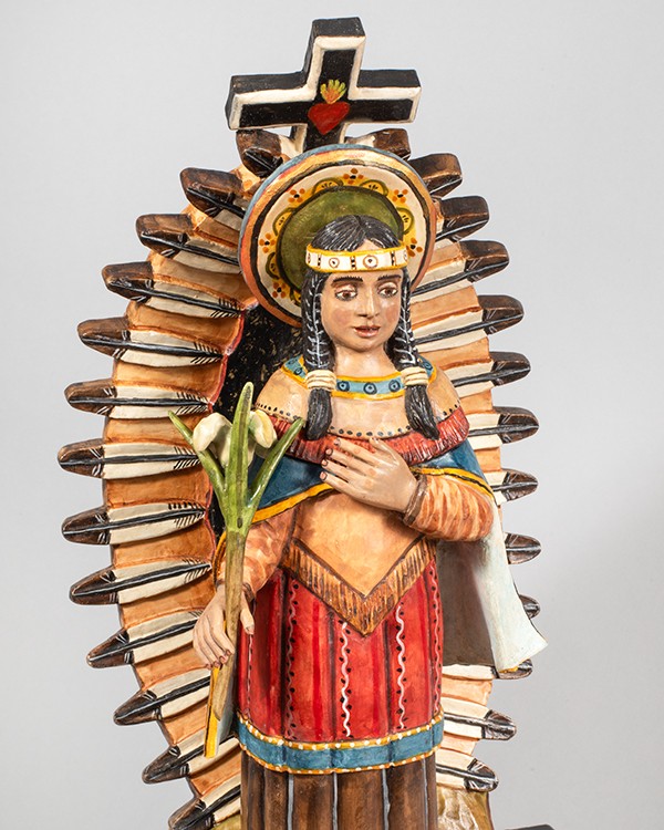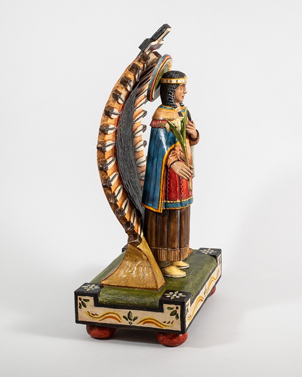 Bulto: Hand-carved and painted wood, 18"h x 10"w x 6.5"d, Item No. 23440,