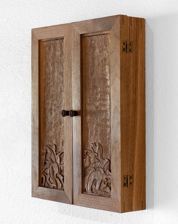 Ink painting, gold leaf on panel, walnut, 17"H x 26"W, Item No. 23350,